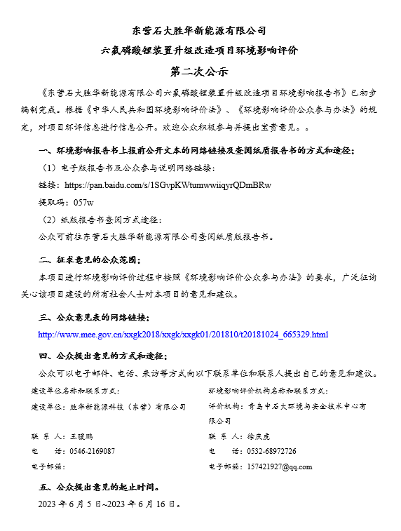 上一篇:勝華(huá)新能源科技(東營)有限公(gōng)司環境信息公開表(2023年第二季度)